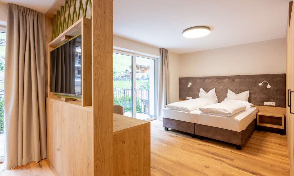 Im Hotel Bergblick im Ratschingstal finden Sie genau den Wohnkomfort, welchen Sie für einen erholsamen Urlaub benötigen. Lehnen Sie sich abends nach einem aufregenden Tag entspannt zurück und genießen Sie von den Zimmern aus den atemberaubenden Blick auf die Südtiroler Bergwelt. Unser Hotel verfügt über 48 modern eingerichtete Unterkünfte, welche in 3 verschiedenen Größen gehalten sind. Unabhängig von der Zimmergröße sind alle Unterkünfte mit Balkon bzw. Terrasse, einem Zimmersafe, Farb-Satelliten-TV und Telefon ausgestattet. Im Badezimmer finden Sie eine Dusche, ein WC und einen Haarfön vor.